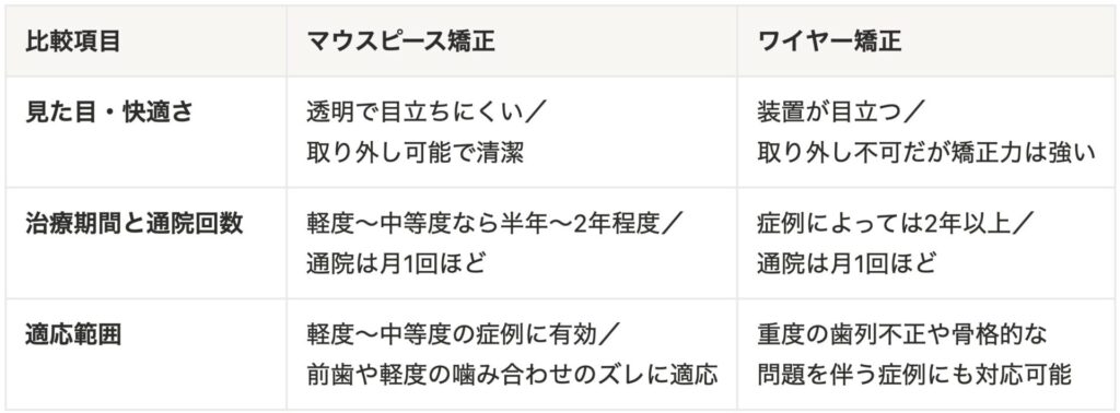 マウスピース矯正とワイヤー矯正のまとめ